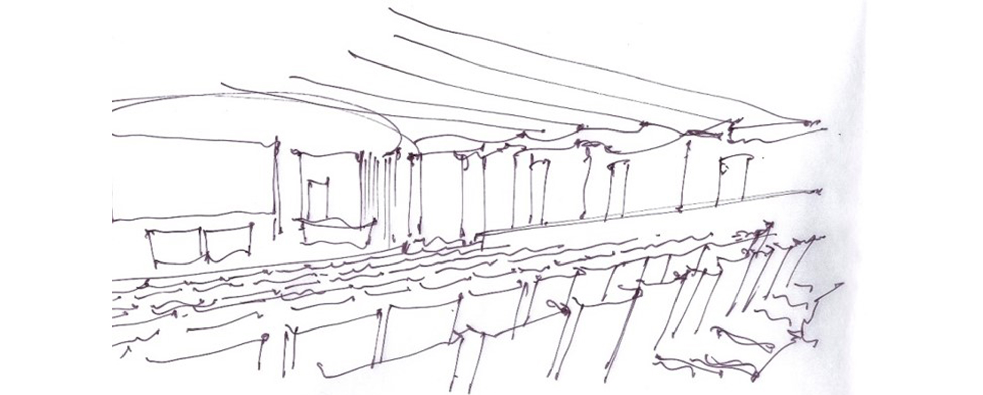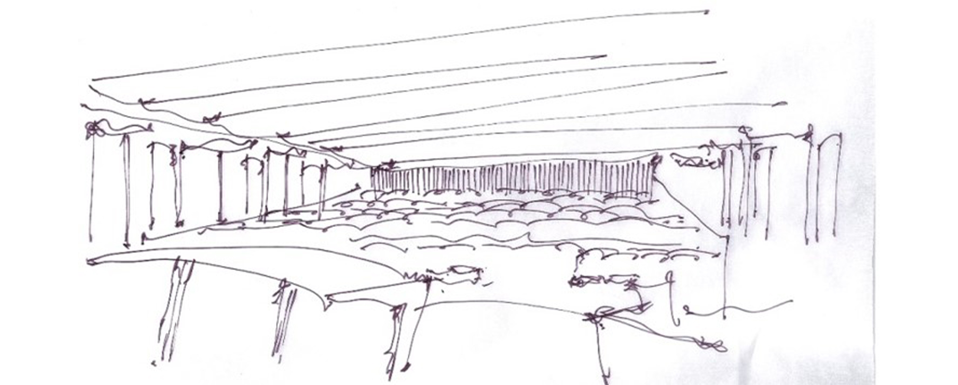 Our material palette includes high density plaster of Paris, high density veneered MDF and perforated frames at the perimeter for air supply as well as diffusing sound where we could. The entire system of acoustic treatment has been designed to be penalized. The project is currently in detailed design by our local partners and under construction albeit in a simpler form.