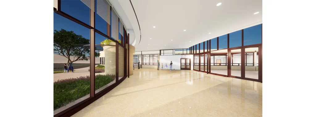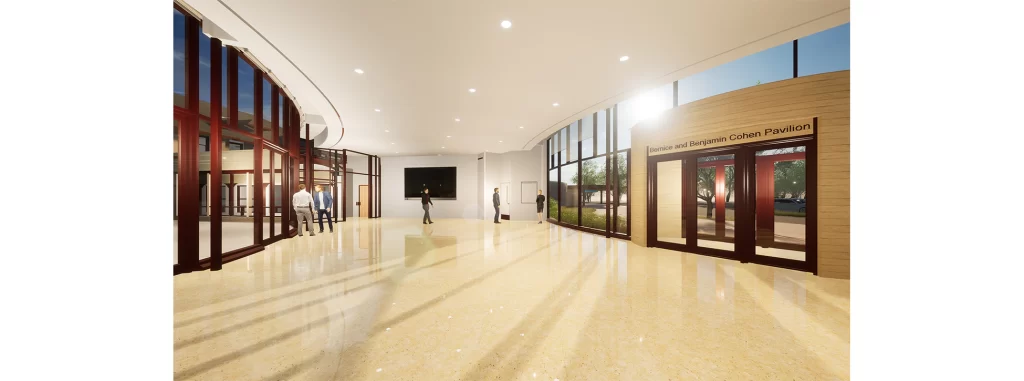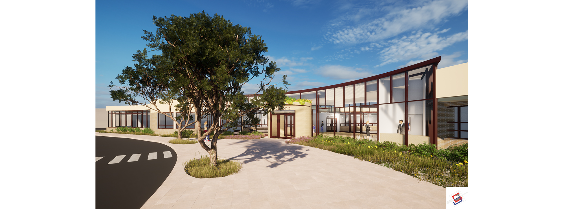 The synagogue was designed with a loggia and frontal access in the original 1961 Percival Goodman plans. A 1983 addition for the administration wing removed the sense of entry and procession, resulting in a long, narrow corridor without presence. In the original master-plan from 2007 and reiterated in 2011, there was a consistent need to restore that sense of entry and procession into a sacred space. The current approach helps tie in various disparate elements and provide a single point of entry and focus to the synagogue. The different elements also have different formal aesthetics, and tying them in will be valuable to the synagogue.