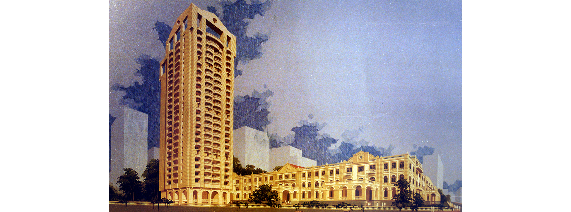 The Petit Sanatorium was built in a colonial neoclassic style over a century ago. In a state of disrepair, and short of maintenance funds, the trustees sold part of the premises for the development of luxury condominiums. They set down a stringent set of design requirements, which included the refurbishment of the existing sanatorium.